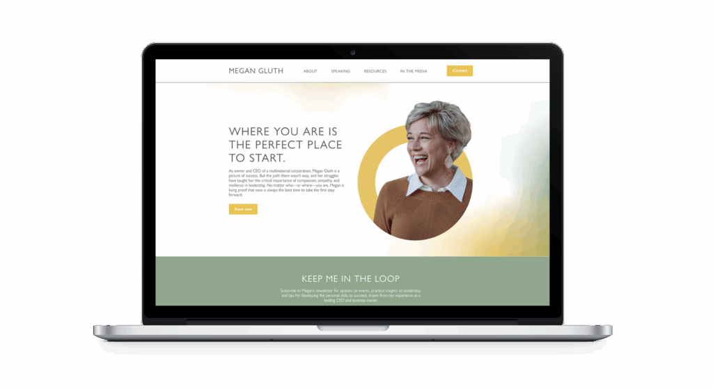 We spearheaded the construction of Meg’s personal brand website, incorporating a speaking strategy, speaker reel, and assets designed to enhance her professional profile. Collaborating closely with her website developer, we ensured the website revamp aligned perfectly with her new branding, providing a consistent and engaging brand experience. With the website we also launched her interview series, The Perfect Place to Start, which invites guests on to share their deeply vulnerable stories and lessons learned.