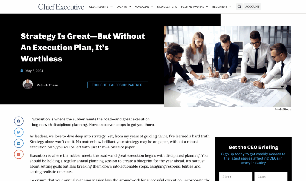 Patrick Thean, CEO of Rhythm Systems, partnered with Zilker Media to enhance consistent revenue generation and lead flow. Patrick Thean is an international speaker, CEO coach, author, and serial entrepreneur. He is a USA Today and Wall Street Journal bestselling author. His work has been seen on NBC, CBS, and Fox. Patrick was named Ernst & Young Entrepreneur of the Year in 1996 for North Carolina as he grew his first company to #151 on the Inc. 500 (now called the Inc. 5000). After a successful exit, he has been on a mission to help CEOs build great companies and achieve their dreams. With his book Rhythm: How to Achieve Breakthrough Execution and Accelerate Growth, Thean shares a simple system for encouraging teams to execute better and faster. Currently the CEO and Co-Founder of Rhythm Systems, he is focused on helping CEOs and their teams experience breakthroughs to achieve their dreams and goals. Rhythm Systems is a leading provider of strategy execution software and consulting services dedicated to helping organizations achieve their growth objectives.